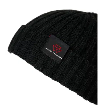 MF Kid’s Black Ribbed Beanie – Strickmütze aus Wolle mit Massey Ferguson-Logo